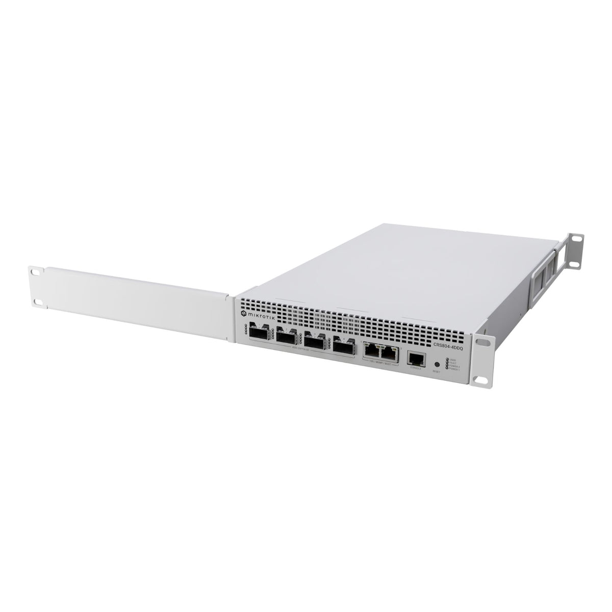 The Mikrotik CRS804 DDQ Cloud Router Switch [CRS804-4DDQ-hRM] is a compact 400G switching for AI clusters, storage fabrics, and lightning fast aggregation – for the best price on the ultra high-speed market.