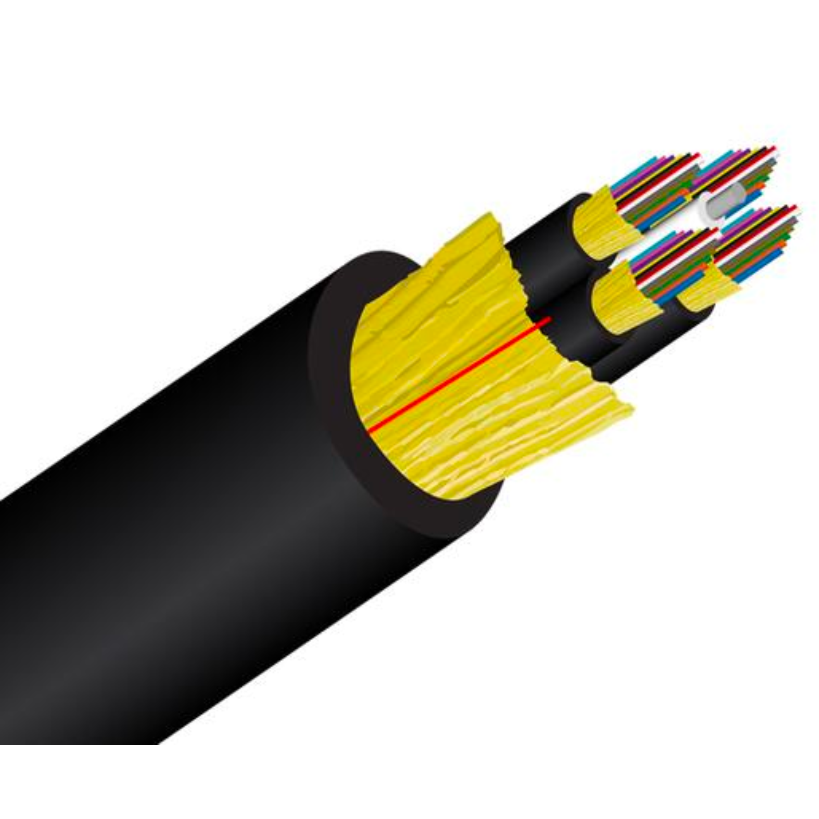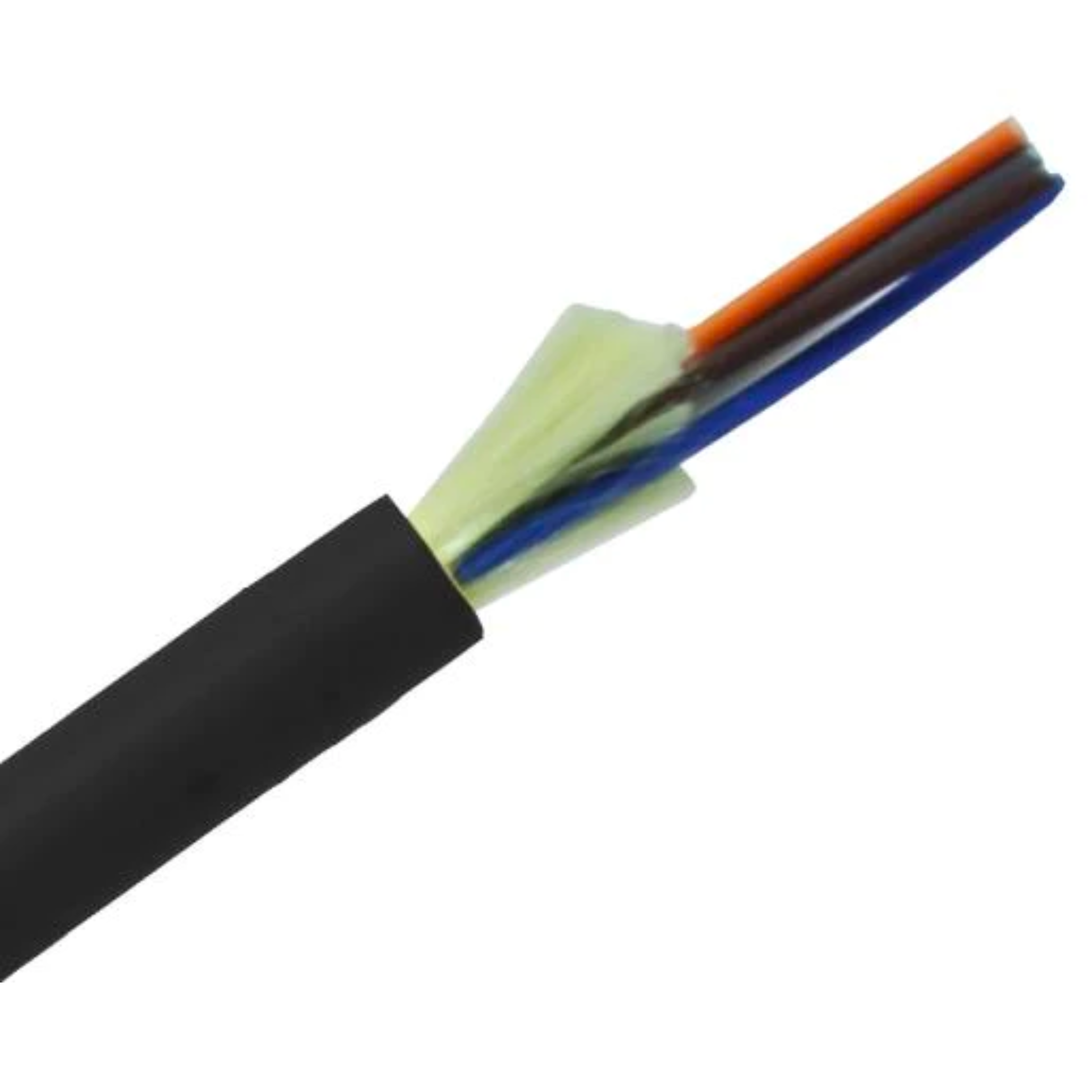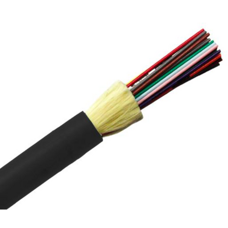 The plenum distribution fiber Cable is available in 12 TIA standard colors or special order colors. Our Fiber is UL Listed with a OFNP fire rating. Standard surface print denotes construction, NEC rating, and fiber type, and includes footage markers.