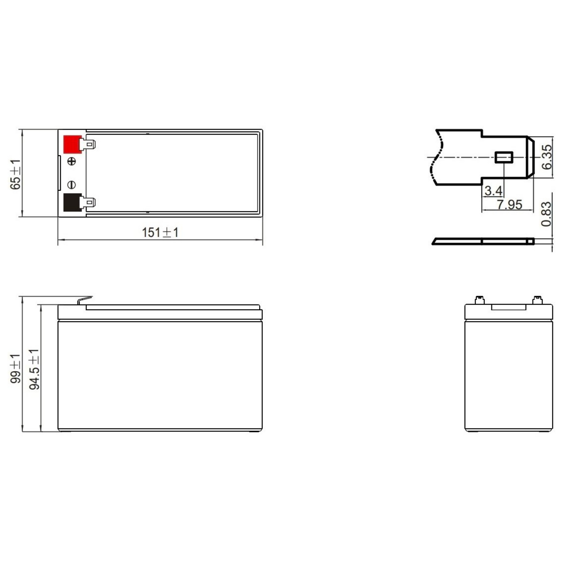 energy storage (parallel). There are two F2 spade terminals for connecting battery cables.