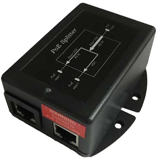The POE-SPLT-48G-VUB is an active splitter which accepts an 802.3at Mode A/B or passive PoE (2 or 4 pair) input and provides two PoE outputs. Output 1 is an 802.3af Mode B PoE output with Data and PoE. Output 2 is a 48V Passive PoE Mode B output with PoE only, no data. The splitter is designed to supply power and data to one device and power only to the second device. It is Gigabit compatible providing speeds to 1000Mbps. There are various protections for short circuit, overload, and low voltage disconnect.