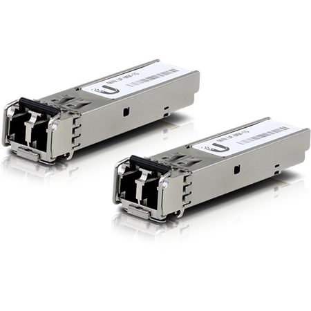 The Ubiquiti 1G Multi-Mode Optical Module [UACC-OM-MM-1G-D-2] is a 2-Pack of SFP transceivers that supports 1G connections up to 550 m using multi-mode fiber with a duplex LC UPC connector.