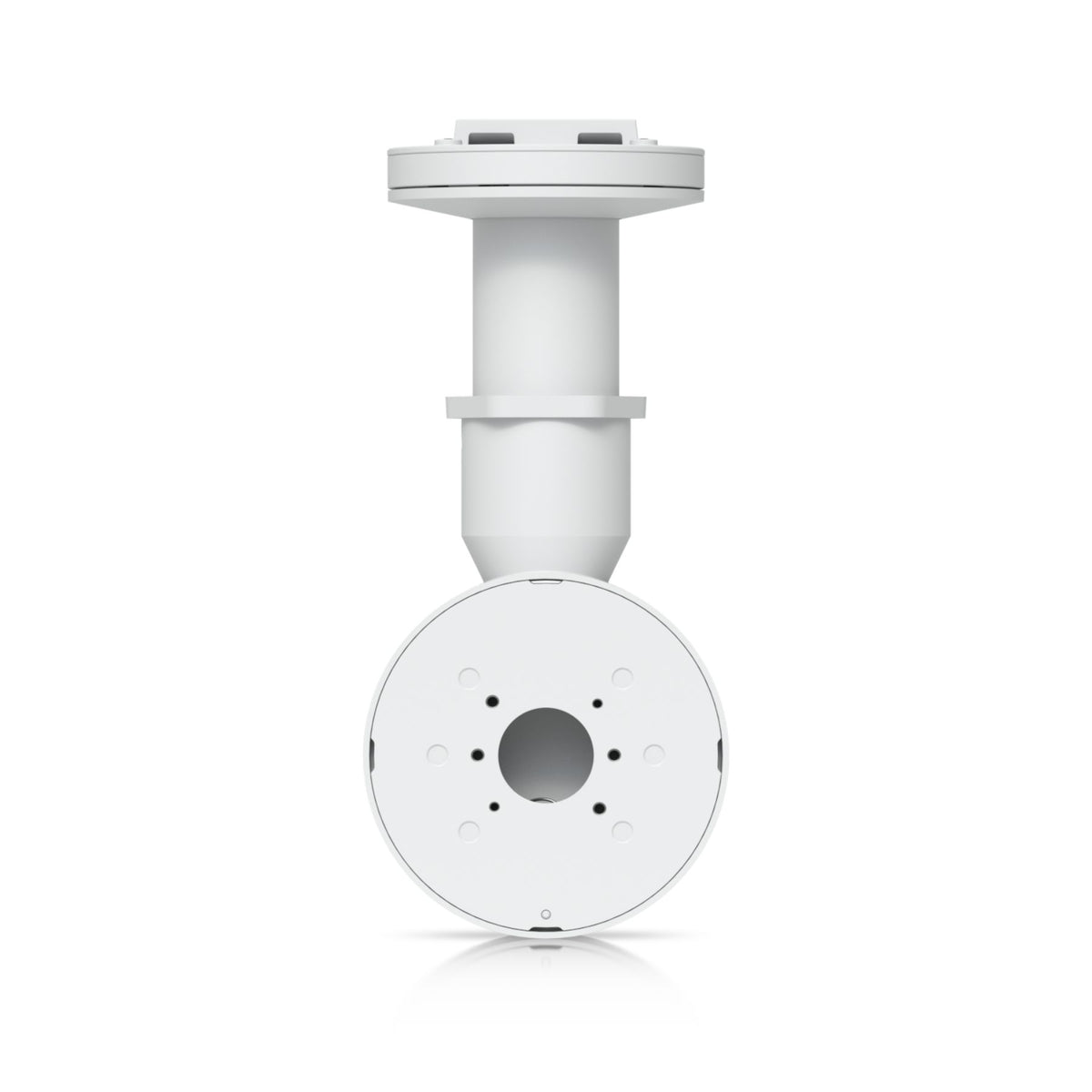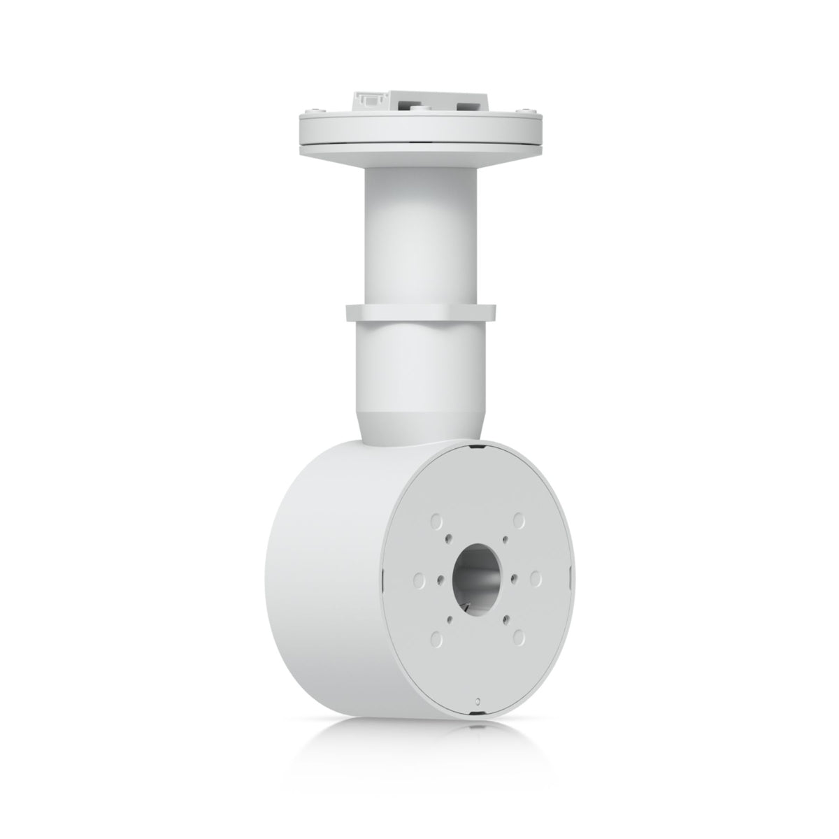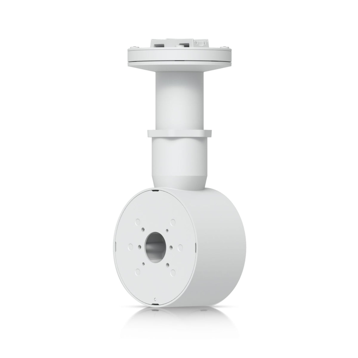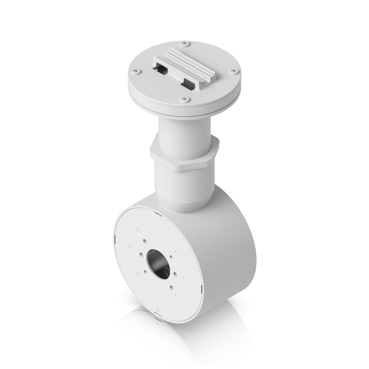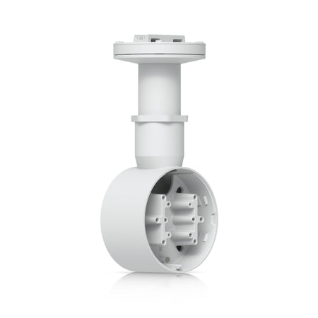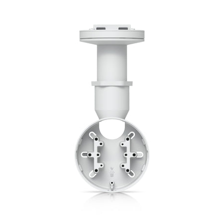The Ubiquiti UniFi Camera Dual Mount, White [UACC-Camera-DM-W] is a tamper-resistant, back-to-back mount for two UniFi Bullet, Dome, or Turret cameras that supports flat surface installation and attachment to 1 1/2" NPS threaded conduit.