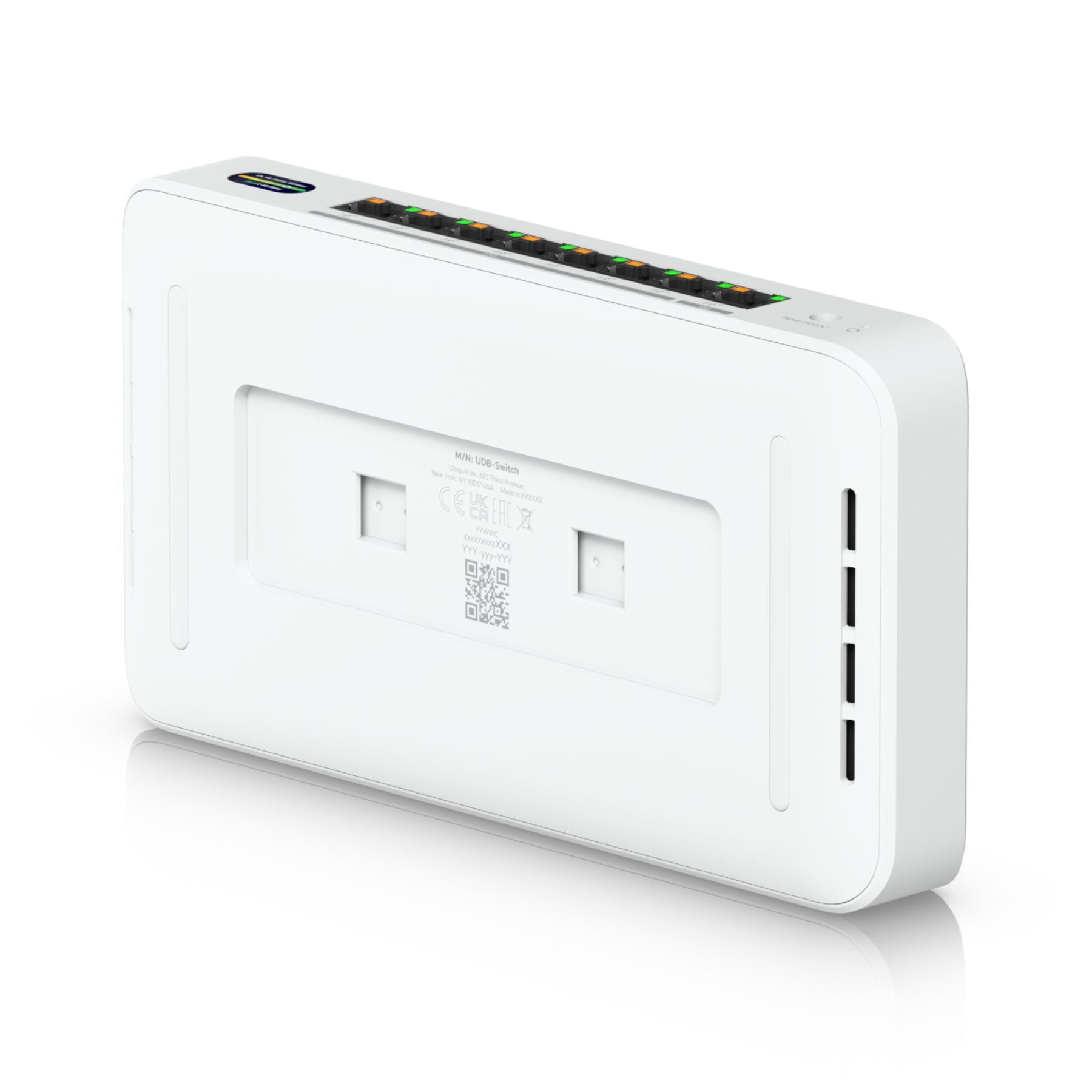 The Ubiquiti UniFi Device Bridge Switch (35W) [UDB-Switch] is a compact PoE+ switch* with (1) 10 GbE port, (7) 2.5 GbE ports, and 6 GHz-ready WiFi 7 bridging integration for seamless, high-capacity wireless uplink to UniFi WiFi.